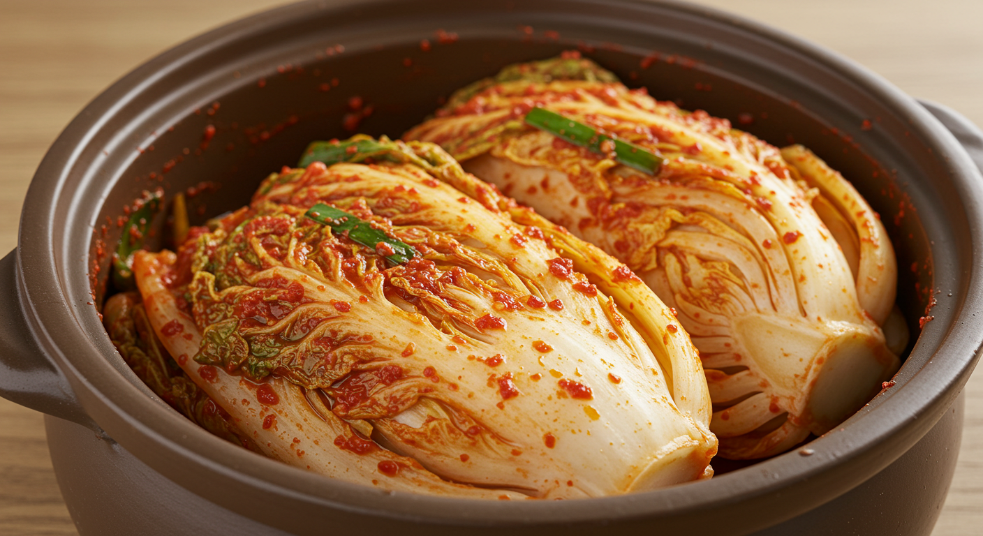 A: 둘 다 장점이 달라요. 갓 담근 생김치에는 비타민 C와 같은 영양소가 더 풍부하게 보존되어 있어요. 반면, 잘 익은 김치에는 유산균(프로바이오틱스)의 수가 압도적으로 많아 장 건강에 더 이로울 수 있습니다. 다양하게 즐기는 것이 가장 좋습니다.