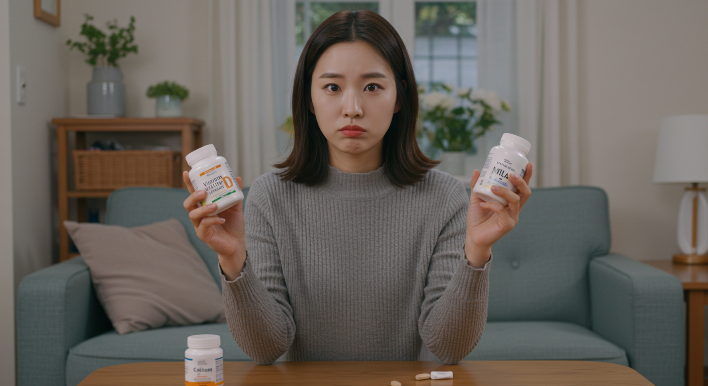 - 중복 섭취 확인하기: 내가 먹는 종합 비타민이나 다른 영양제에 이미 비타민D나 칼슘이 포함되어 있는지 확인하여, 모든 영양제의 총합이 과도하지 않은지 반드시 계산해야 합니다.