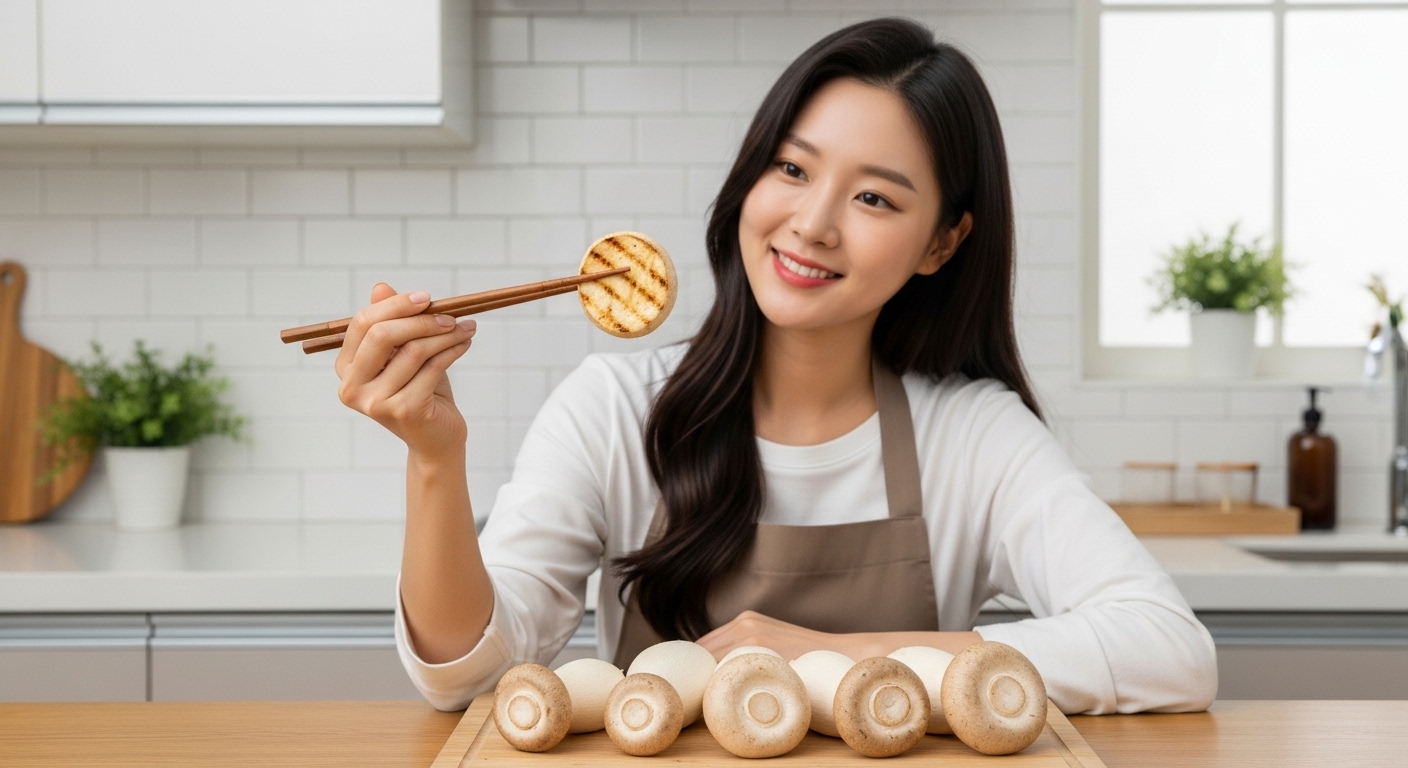 • '소금구이' (강력 추천): 갓과 기둥을 통째로 또는 굵게 찢어, 기름을 두르지 않은 팬이나 석쇠에 굽습니다. 수분이 살짝 올라올 때 소금이나 기름장에 찍어 먹으면 본연의 향과 식감을 최고로 즐길 수 있습니다.