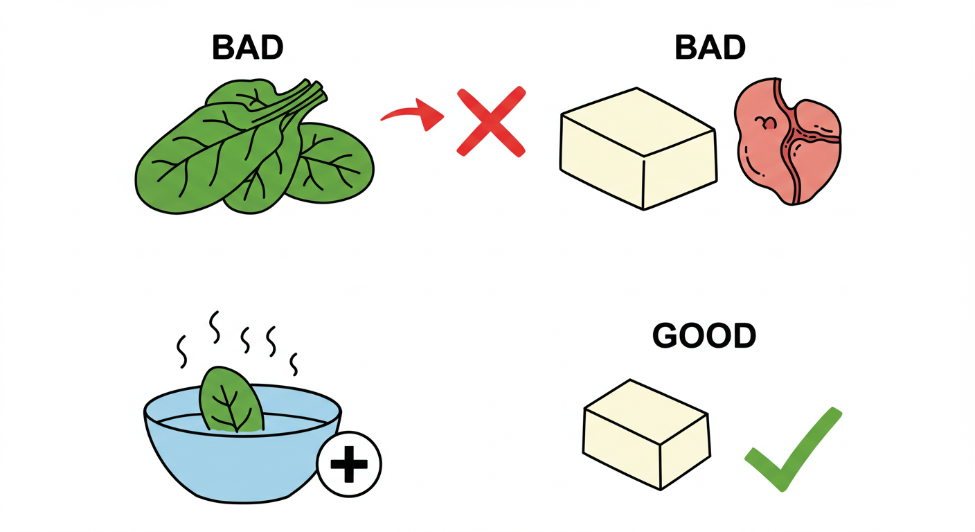 문제의 원인: 시금치의 '옥살산'과 두부의 '칼슘'