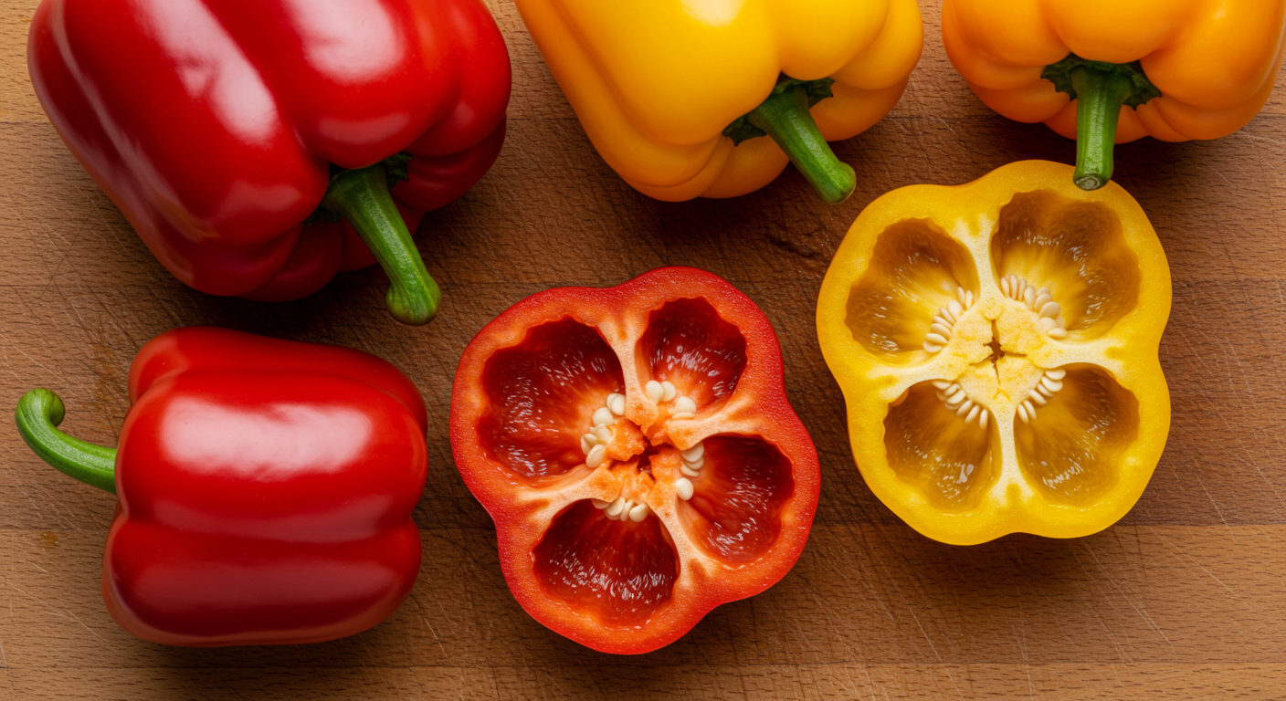 • 첫 번째 핵심: 파프리카는 피망보다 맵지 않고 단맛이 강하며, 비타민 C와 베타카로틴 등 영양소 함량이 훨씬 높습니다.