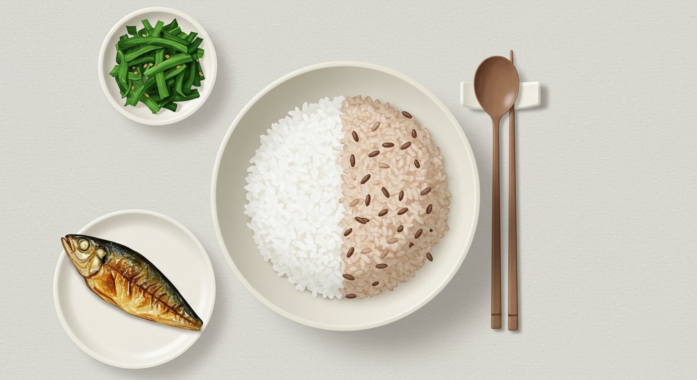 - 잡곡 섞어 먹기: 흰쌀에 현미, 보리, 콩, 퀴노아 등 다양한 잡곡을 섞어 드세요. 풍부한 식이섬유가 혈당이 급격히 오르는 것을 막아주고 포만감을 높여줍니다.