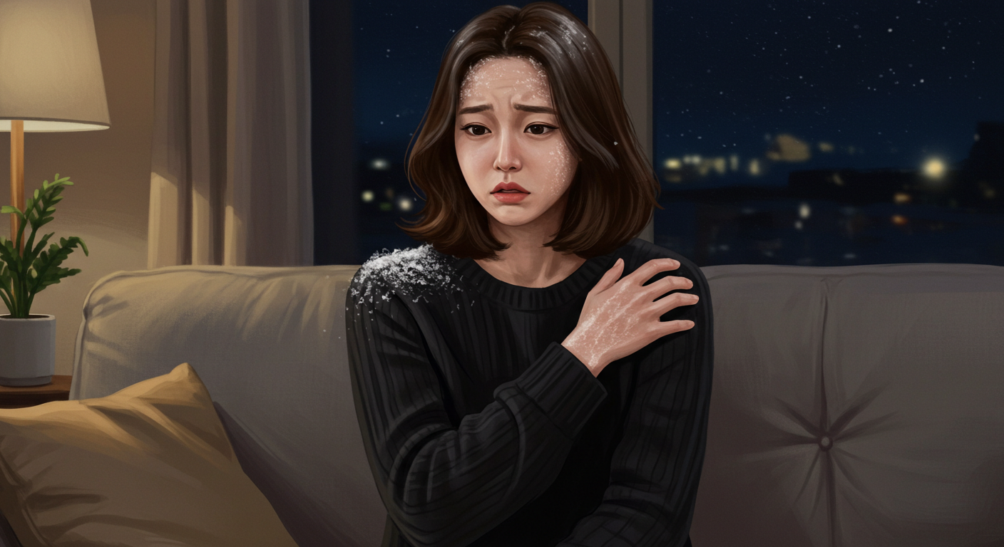 가을철에 생기는 각질을 피지가 과도해 생기는 '지성 비듬'으로 오해하고, 세정력이 강한 샴푸를 사용하면 오히려 두피는 더 건조해져 각질이 심해지는 악순환이 생깁니다. 건조해서 생기는 각질은 가루처럼 날리는 작고 하얀 형태를 띱니다. 해결책은 '강력 세정'이 아닌 '두피 보습'입니다.