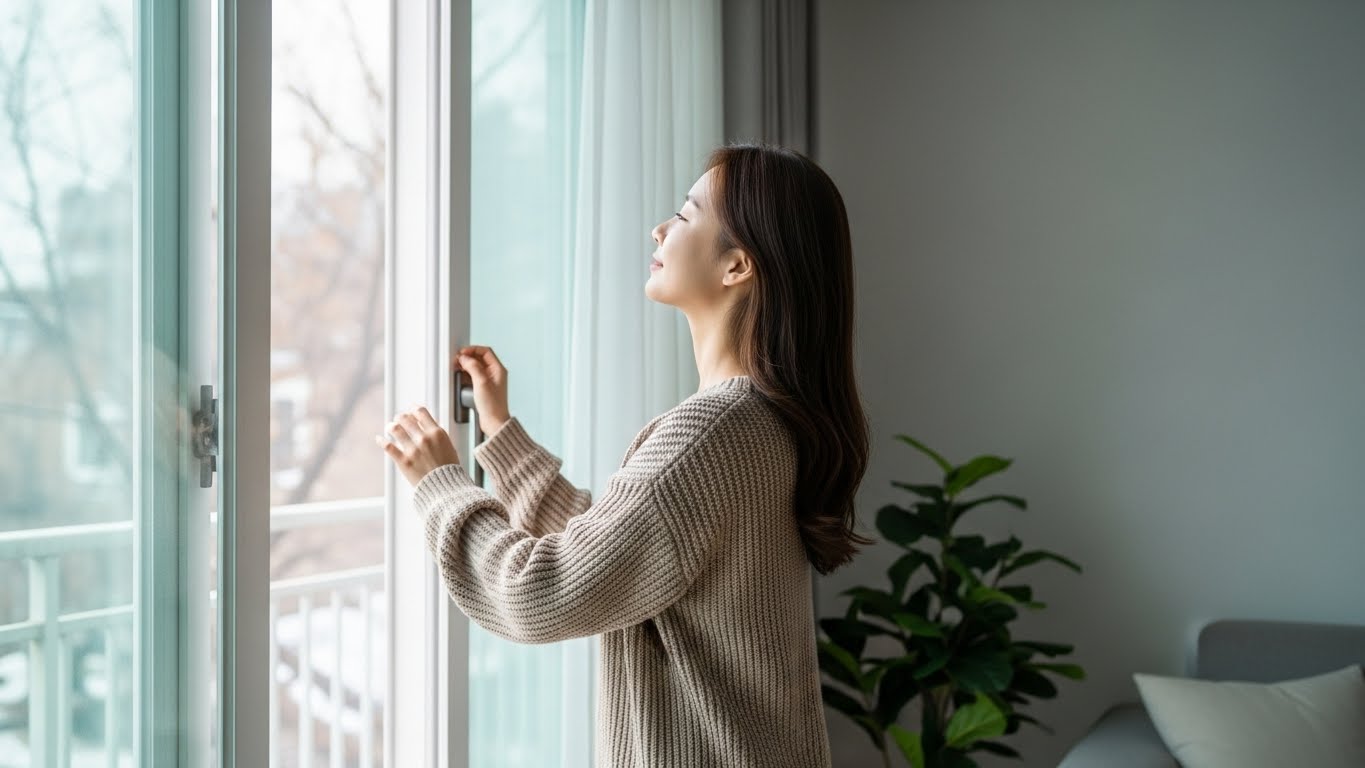 추위보다 무서운 것은 보이지 않는 1급 발암물질입니다. 하루 3번, 10분의 투자가 우리 가족의 폐 건강을 지키는 가장 확실한 보험입니다. 지금 바로 창문을 활짝 열어 묵은 공기를 내보내세요.