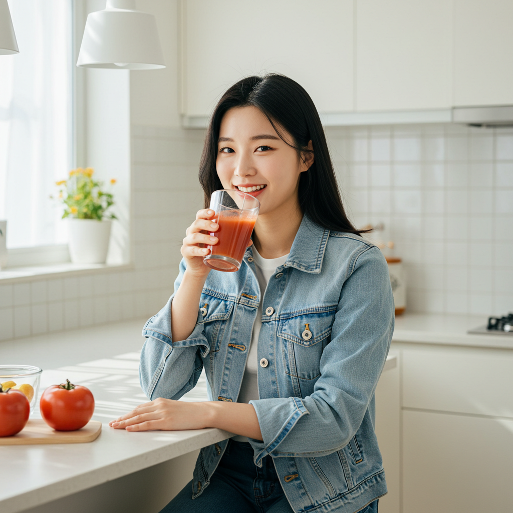 토마토주스는 심혈관 건강, 암 예방, 피부 건강, 면역력 강화 등 다양한 효과를 가지고 있다. 따라서 아침 마다 토마토 주스를 먹어볼까 생각하지만 아침 공복에 아침식사 대용은 추천하지 않는다고 한다.