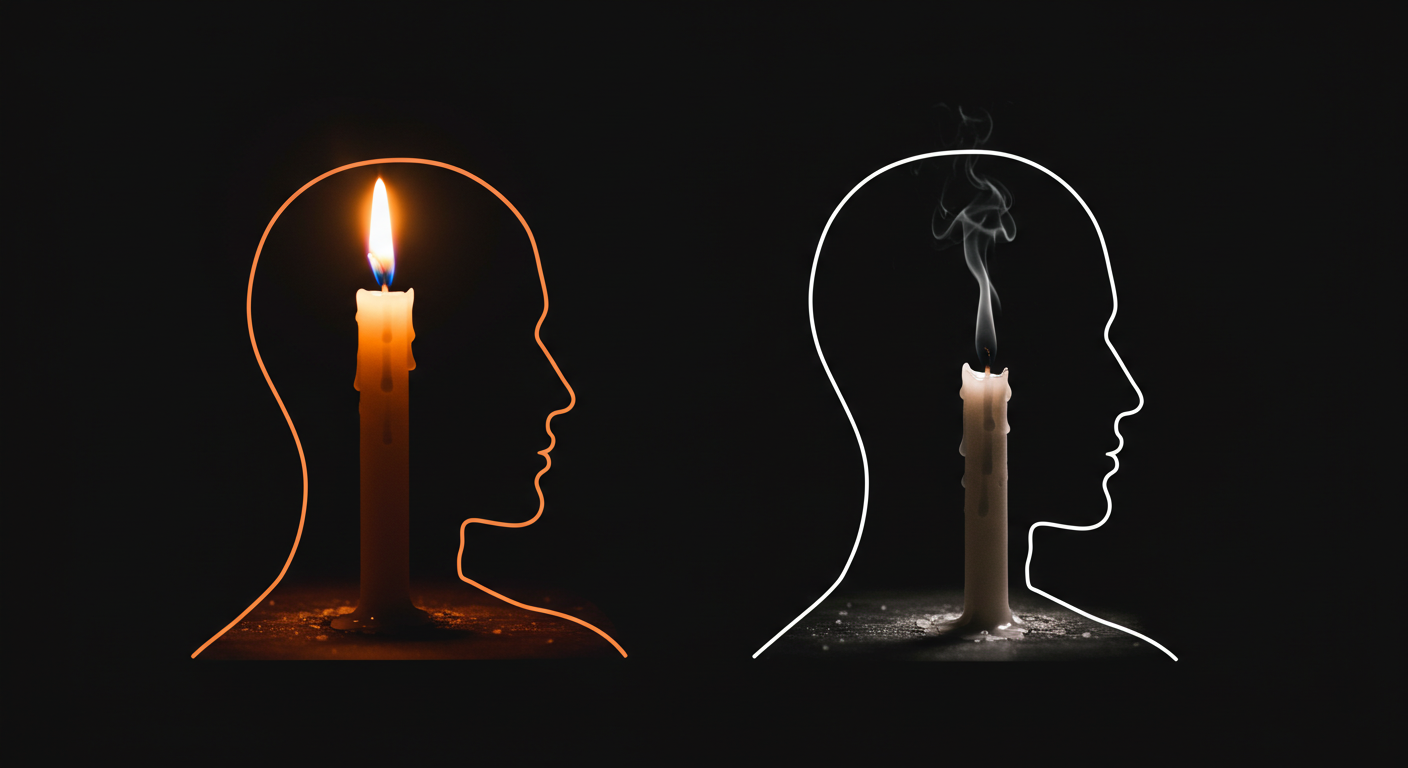 이 단계에 이르면 불면증, 식욕 부진이나 폭식, 사회적 고립, 극단적인 생각 등 본격적인 우울증의 증상들이 나타날 수 있습니다. 번아웃이 '에너지가 없는 상태'라면, 우울증은 '희망이 없는 상태'라고 할 수 있습니다. 따라서 에너지가 바닥나기 전, 희망을 잃기 전에 스스로의 상태를 알아차리고 대처하는 것이 무엇보다 중요합니다.