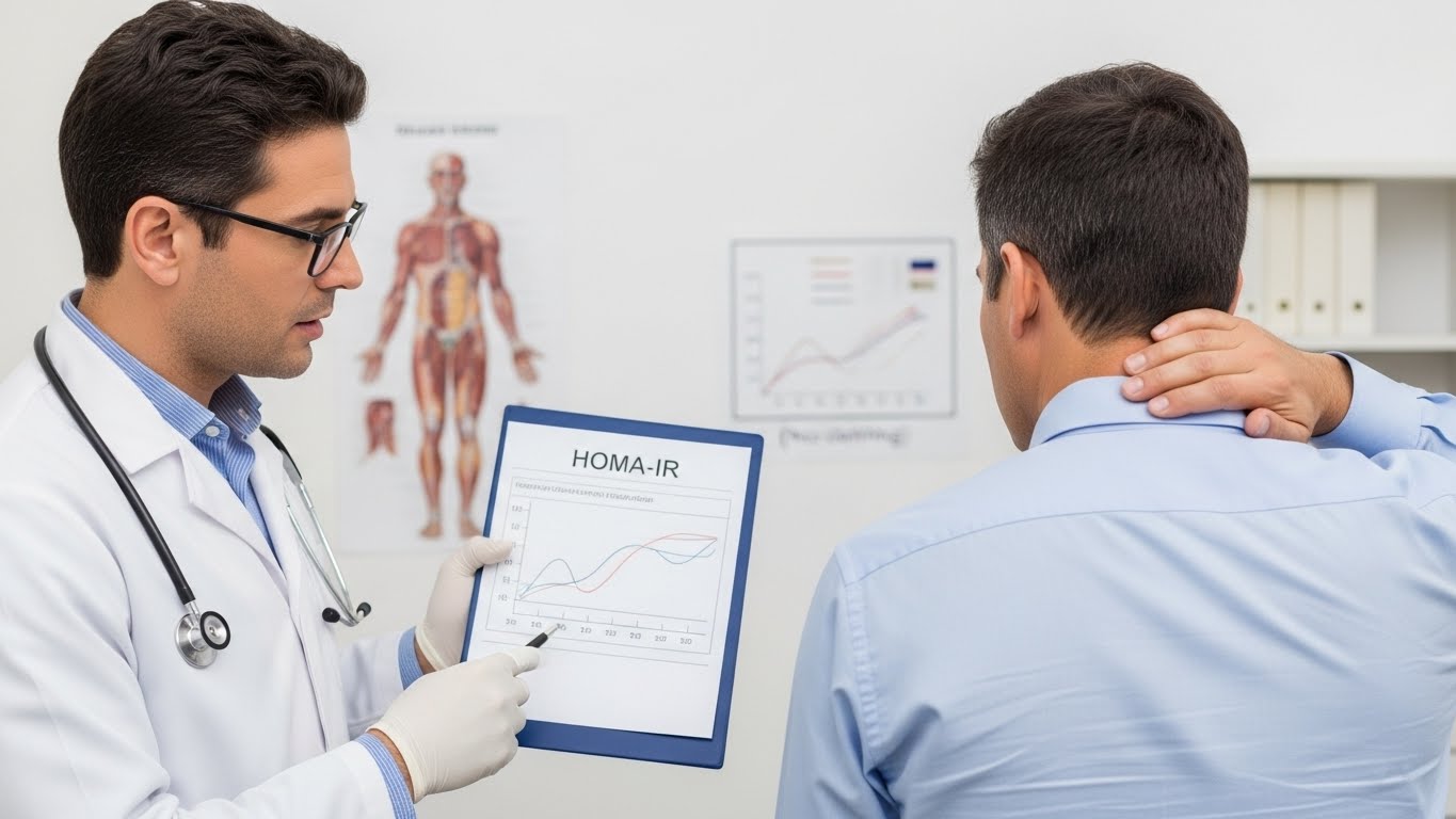 목 뒤가 거뭇거뭇하고 쥐젖이 늘어난다면, 때를 밀 것이 아니라 식단을 점검해야 할 때입니다. 가까운 내과에서 HOMA-IR 검사를 통해 내 몸의 대사 시스템을 점검해 보세요.