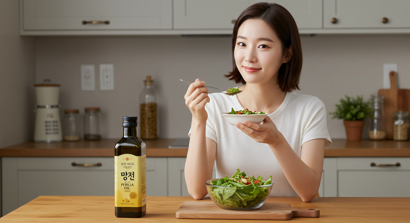 A: 들기름은 발연점이 낮아 고온에서 가열하면 좋은 성분이 파괴되고 발암물질이 생성될 수 있습니다. 따라서 튀김이나 볶음 요리보다는, 불을 끈 후 나물을 무치거나 비빔밥, 샐러드드레싱, 계란 프라이 위에 뿌려 먹는 등 열을 가하지 않는 방식으로 섭취하는 것이 가장 좋습니다.