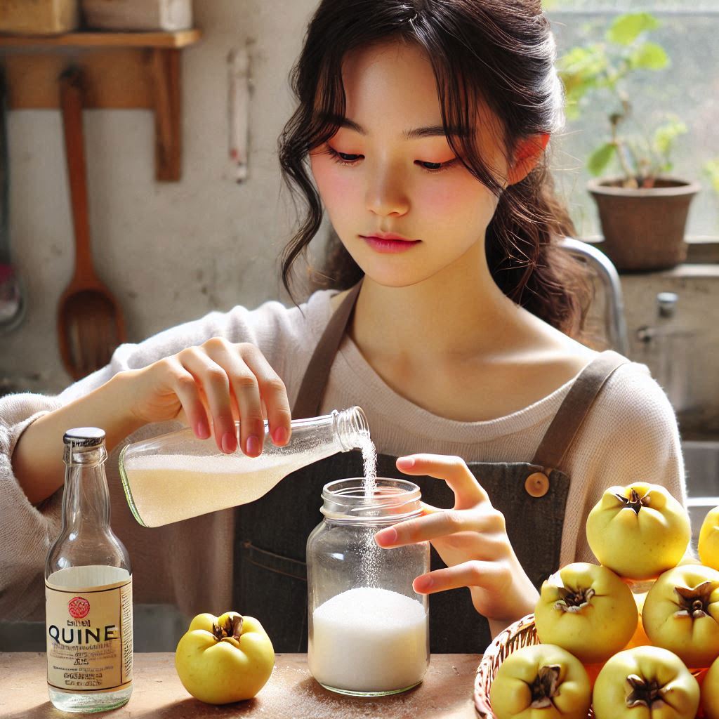 모과 1kg를 깨끗이 씻고 잘개 잘라주면 좋다. 껍질은 벗기지 않는 것이 좋은데 씨는 제거를 해야 한다. 잘게 자를수로 쓴맛을 줄일수가 있다. 이후 모과를 율리병에 담고 설탕300g 그리고 소주나 청주 1.5리터를 부어주어서 재료가 섞이도록 해준다.