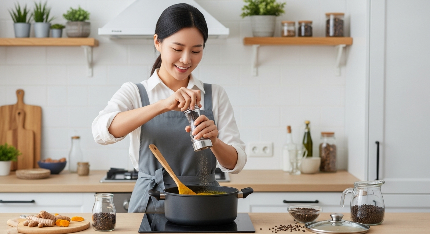 흑후추의 매운맛 성분인 '피페린(Piperine)'은 커큐민이 간에서 분해되고 배출되는 것을 막아줍니다. 연구에 따르면, 커큐민과 피페린을 함께 섭취했을 때 체내 흡수율이 무려 2000%(20배)까지 증가했습니다. 카레를 먹을 때나 강황 가루를 요리에 쓸 때, 후추를 톡톡 뿌리는 것은 선택이 아닌 필수입니다.