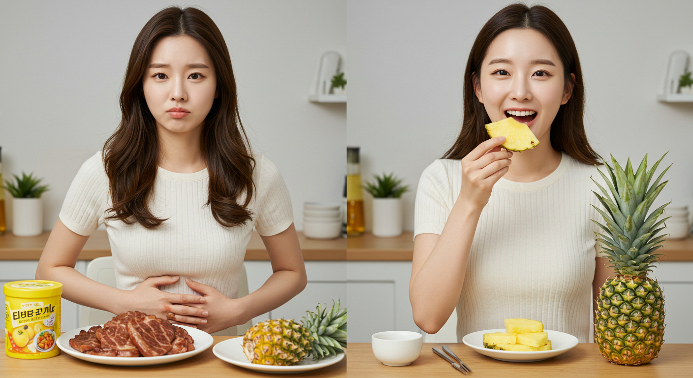 고기 먹은 다음 날, 유독 속이 더부룩하고 소화가 안 돼 고생한 경험, 다들 있으시죠? "소화제부터 찾아야 하나" 고민될 때, 약 대신 상큼하고 달콤한 '이것'을 후식으로 드셔보세요. 바로 '파인애플' 속에 숨겨진 강력한 천연 소화제가 당신의 속을 편안하게 만들어 줄 것입니다.